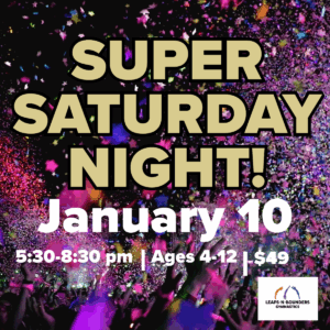 SUPER SATURDAY NIGHT + Add to Google Calendar + iCal / Outlook export 00 days 00 hours 00 minutes 00 seconds Date Jan 10 2026 Time 5:30 pm - 8:30 pm Cost 49.00 Category Calendar Share this event Search for: Recent Posts Tumbling Girls & Boys Instructional Gymnastics Preschool Gymnastics Me & My Shadow Gymnastics Recent CommentsArchives February 2019 Categories Uncategorized Meta Log in Entries feed Comments feed WordPress.org